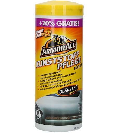 ARMOR ALL Kunststoff-Pflegetücher glänzend (30 Stk.) ARMOR ALL Kunststoff-Pflegetücher ideal fürs Cockpit. Reinigen Kunststoff- und Vinyloberflächen in einem Arbeitsgang. Reinigung & Schutz mit einem Wisch, es lässt das Armaturenbrett wie neu aussehen und erzeugt ein glänzendes Finish. Eigenschaften: Kunststoffpflege glänzend Inhalt: 30 Tücher ...