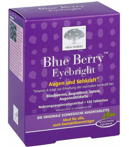 Anwendungsgebiet von Blue Berry TablettenBlue Berry Tabletten ist die originale schwedische Augentablette - ideal für alle, auch Kontaktlinsenträge. Wirkungsweise von Blue Berry TablettenBlue Berry Tabletten ist die Tablette, die Sie dabei unterstützt, eine normale Sehkraft und kognitive Gehirnprozesse zu bewahren, die Gedächtnis und Reaktionsfähigkeit umfassen. Diese Tablette, die in Schweden hergestellt wird, enthält Blaubeere, Augentrost und Tagetes Bluten Extrakt. Der Tagetes Extrakt hat einen standardisierten Gehalt an natürlichem gelben Lutein, das auch in der Macula des Auges vorhanden ist - der Teil des Auges, der verantwortlich ist für das zentrale Sehen. Der Gehalt an Vitamin A tragt zur Erhaltung der normalen Sehkraft bei, der Gehalt an Zink zur normalen kognitiven Funktion.Wirkstoffe / Inhaltsstoffe / ZutatenZutaten: von Blue Berry Tabletten: Füllstoff: Mikrokristalline Cellulose, Blaubeerextrakt (Vaccinium Myrtillus L.),Augentrostextrakt (Euphrasia officinalis, L.), Studentenblumenextrakt (Tagetes Erecta L.),Trennmittel: Vernetzte Natriumcarboxymethyl Cellulose. Überzugsmittel: Magnesiumsalz von Speisefettsauren, Hydroxycarboxymethyl Cellulose. Minerale: Zink, Kupfer. Vitamin A(Retinylacetat). Stabilisator: Siliciumdioxid. Die tägliche Tagesdosis (2 Tabletten) enthält % des Tagesbedarfs* Blaubeerextakt (Vaccinium Myrtillus L.) 400 mg 5:1, entspricht 2000 mg getrocknete Fruchte Augentrostextrakt (Euphrasia officinalis L.) 200 mg 5:1, entspricht 1000 mg getrocknete Blatter Studentenblumenextrakt (Tagetes erecta L.) 100 mg standardisiert an 10% = 10,0 mg Lutein Vitamin A 400 mcg 50% Zink 10 mg 100% Kupfer 1 mg 100% * Nach Nährwertkennzeichnungsverordnung.GegenanzeigenBei bekannter Überempfindlichkeit gegen einen der Inhaltsstoffe sollte dieses Produkt nicht angewendet werden.DosierungAnwendungsempfehlung des Blue Berry Tabletten: ...