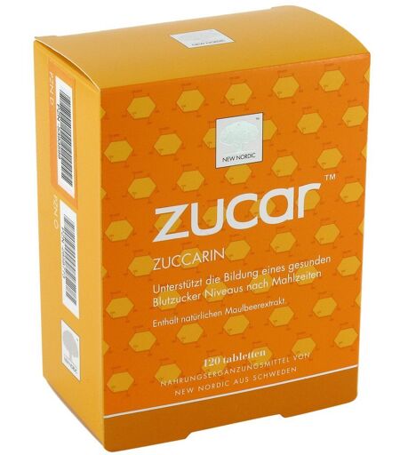 Anwendungsgebiet von Zucar Zuccarin TablettenZUCAR™ Zuccarin ist ein original skandinavisches Produkt. Es ist geeignet für Personen, die ein normales Blutzuckerniveau bewahren möchten, besonders nach Mahlzeiten. Zucar™ Zuccarin enthält Maulbeerblattextrakt und Chrom. Maulbeerblattextrakt trägt zur Unterstützung eines ausgeglichenen Kohlenhydratstoffwechsels bei. Chrom trägt zur Unterstützung eines gesunden Blutzuckerniveaus und ausgeglichenen Kohlenhydrat-, Protein- und Fettstoffwechsels bei. Wirkstoffe / Inhaltsstoffe / ZutatenZutaten von Zucar Zuccarin Tabletten: Maulbeerblattextrakt (Morus Alba L), Füllstoff: (Mikrokristalline Cellulose, Dicalciumphosphat), Überzugsmittel (Hydroxypropylmethylcellulose, Gummi Arabicum, Talkum, Glyzerin), Antiklumpmittel (Siliciumdioxid), Mineral (Chrom Picolinat). Inhalt pro Tagesverzehrsmenge: Inhaltsstoffe Pro 3 Tbl Pro 6 Tbl % RM* Maulbeerblattextrakt (Morus Alba L.) 1200 mg 2400 mg Chrom 20 μg 40 μg 50/100 * Referenzmenge nach EU-Lebensmittelinformationsverordnung.GegenanzeigenBei bekannter Überempfindlichkeit gegenüber einem der oben genannten Inhaltsstoffe sollte dieses Produkt nicht angewendet werden.DosierungVerzehrempfehlung von Zucar Zuccarin Tabletten: In den ersten 10 Tagen 3-mal täglich 2 Tabletten vor den Mahlzeiten mit einem Glas Wasser einnehmen.HinweiseDie angegebene empfohlene tägliche Verzehrmenge darf nicht überschritten werden. Nahrungsergänzungsmittel sollten nicht als Ersatz für eine ausgewogene und Abwechslungreiche Ernährung und eine gesunde Lebensweise verwendet werden. Nahrungsergäzende Präparate sollten von Schwangeren, Stillenden und Kindern bis zu elf Jahren nur nach Absprache mit einem Artz oder Apotheker eingenommen werden. Zucar Zuccarin Tabletten können in Ihrer Versandapotheke www.juvalis.de erworben werden. ...