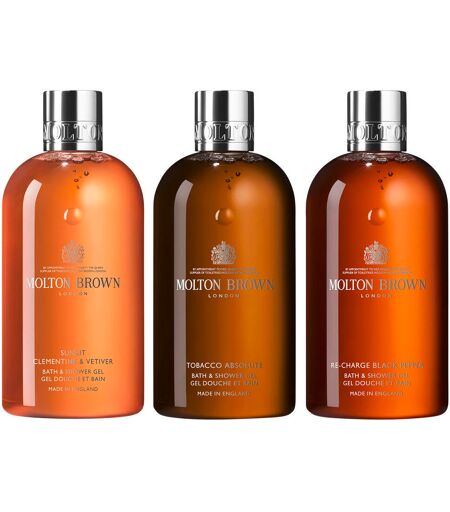 Eine duftende Entdeckungsreise – die Molton Brown Bade- und Duschgel Kollektion Dieses hochwertige Set vereint drei ikonische Duftkompositionen: das strahlend-zitrische Sunlit Clementine & Vetiver, das warm-würzige Tobacco Absolute sowie das aromatisch-intensive Re-charge Black Pepper. Jeder Duft bietet ein einzigartiges Dufterlebnis und verwandelt die tägliche Pflegeroutine in einen luxuriösen Moment. Die Bade- und Duschgele von Molton Brown sind bekannt für ihre hochwertigen Rezepturen, hergestellt in England aus feinsten Inhaltsstoffen. Sie eignen sich sowohl als belebender Duschbegleiter als auch für ein entspannendes Badeerlebnis. Set-Inhalt: 1 x Sunlit Clementine & Vetiver Bade- und Duschgel, 300 ml1 x Tobacco Absolute Bade- und Duschgel, 300 ml1 x Re-charge Black Pepper Bade- und Duschgel, 300 ml Anwendung: Auf die feuchte Haut auftragen, aufschäumen und gründlich abspülen – für ein angenehm gepflegtes und dezent duftendes Hautgefühl. ...
