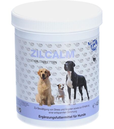 Ergänzungsfuttermittel für (Hunde) ZILCALM KAUTABLETTEN Zieltierart: Hunde Zur Bewältigung von Stress und Ängsten sowie zur Erhaltung einer entspannten Stimmung. Zur Beruhigung von ängstlichen und gestressten Hunden & Katzen Mit Milchproteinhydrolysat, ein klinisch bewährter Inhaltsstoff, zur Bewältigung von Stress Unterstützt die Gehirnfunktion und das Nervensystem für ein ausgeglichenes Wesen Hilft bei der Bewältigung stressbedingter Verdauungsprobleme Hunde reagieren oft besonders sensibel auf plötzliche Veränderungen in ihrem Umfeld. Von Urlauben, Umzügen, oder neuen Familienmitgliedern bis hin zum Feuerwerk an Silvester gibt es unterschiedlichste Auslöser für ein gestresstes Haustier. Äußerlich erkennbar zeigt sich der Stress bei den beiden Tierarten ähnlich. Typische Symptome sind zum Beispiel starker Haarausfall und vermehrtes Kratzen, veränderte Verhaltensweisen sowie Ess- oder Trinkgewohnheiten, oder auch plötzliche Probleme mit dem Magen–Darm–Trakt. Zilcalm® unterstützt Hunde in stressigen Situationen dank seinem natürlichen Inhaltsstoffkomplex. Das enthaltene Milchproteinhydrolysat, ein aus Milchprotein gewonnenes Peptid (Alpha-Casozepin), macht es möglich das Tier auf natürliche Weise zu beruhigen, ohne zu sedieren. Zusätzlich wurde die Wirkung klinisch belegt und keine Nebenwirkungen festgestellt. Zilcalm® eignet sich sowohl zur dauerhaften und langfristigen Abgabe als auch zur kurzfristigen situationsbedingten Unterstützung bei bevorstehenden stressigen Ereignissen, wie zum Beispiel ein Umzug, ein Tierarztbesuch, oder die Silvesternacht. Das Produkt ist im Sinne der physiologischen Konsequenz formuliert und enthält deshalb auch Inhaltsstoffe, zur Unterstützung der Gehirnfunktion und des Nervensystems für ein ausgeglichenes Wesen. Zilcalm® stärkt außerdem auch das Immunsystem und fördert die Magen-Darm-Gesundheit, da auch diese Systeme stressbedingt Unterstützung benötigen. Diese in Zilcalm® enthaltenen Hauptinhaltsstoffe unterstützen das Tier bei der Bewältigung von Angst und Stress: Milchproteinhydrolysat: ein aus Milchprotein gewonnenes Peptid (Alpha-Casozepin), macht es möglich das Tier auf natürliche Weise zu beruhigen, ohne zu sedieren Ashwaganda: eine Heilpflanze, die bei der Bewältigung von physischem und mentalem Stress unterstützt L-Tryptophan: eine Aminosäure, die synergetisch mit dem Milchproteinhydrolysat die Serotoninproduktion anregt – verbessert das Aufmerksamkeitslevel und die Stimmung, verringert Aggression und Stress Omega 3 Fettsäuren: Verringerung von Angstzuständen und Unterstützung der Gehirngesundheit Vitamin B6 & B12: Unterstützung von kognitiven Funktionen und des Nervensystems Vitamin E: Antioxidans, erhöhter Bedarf in Stresssituationen Magnesium: erhöhter Bedarf in Stresssituationen, ein Magnesiummangel kann zu erhöhter Stressanfälligkeit führen Prebiotika & Postbiotika: zur Unterstützung des Mikrobioms (eine gesunde Magen-Darm-Funktion trägt zum allgemeinen Wohlbefinden bei)... ...