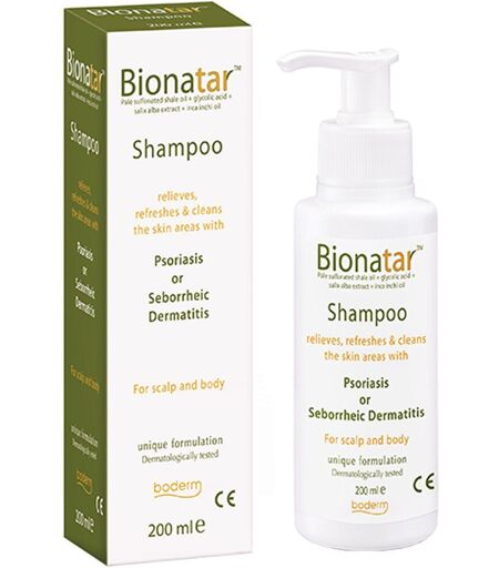 BIONATAR Shampoo boderm Bionatar™ Das Shampoo wurde entwickelt, um die Kopfhaut und die Haut bei Patienten, die Symptome von Psoriasis oder seborrhoischer Dermatitis entwickeln, abzuschälen, zu reinigen und zu beruhigen. Seine einzigartige Formel ist reich an Ichthyol (Sosdiumschieferölsulfonat), Salix-Alba-Extrakt, Glykolsäure, Inca-Inchi-Öl und Panthenol. Die Kombination dieser Komponenten in Bionatar™ Shampoo hilft bei der Erweichung und Entfernung von Schuppen, die aufgrund von Hyperkeratose entstehen. Es bietet auch eine feuchtigkeitsspendende und beruhigende Wirkung auf gereizte Hautpartien und hinterlässt ein angenehmes Gefühl. Anwendung: Tragen Sie 1-2 Portionen auf das nasse Haar oder die nasse Hautpartie auf und massieren Sie es leicht ein. Lassen Sie sie 5-10 Minuten einwirken und spülen Sie sie dann ab. Bei Kontakt mit den Augen mit frischem Wasser ausspülen. Hinweis: Wenn Sie Fragen haben, zögern Sie bitte nicht, sich an Ihren Apotheker oder Arzt zu wenden. Bitte lagern Sie an einem kühlen und trockenen Ort unter 28°C. Von Kindern fernhalten. Nur zur äußerlichen Anwendung. Zusammensetzung: Sodium shale oil Sulfonate, Glycolic Acid, Salic alba extract, Inca inchi oil, excipients q.s. ...