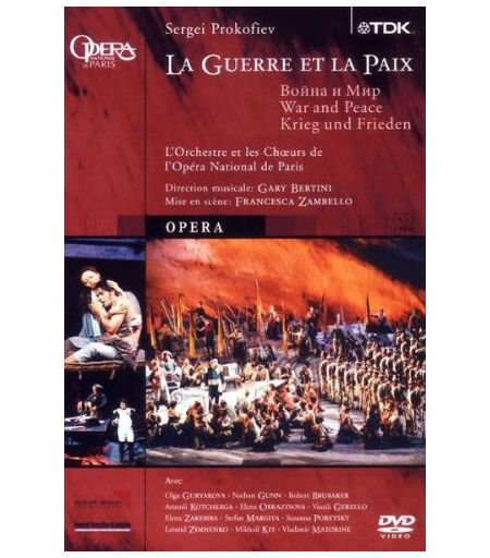 AspectRatio : 1.77 : 1, AudienceRating : Freigegeben ab 6 Jahren, Binding : DVD, Label : TDK, Publisher : TDK, NumberOfDiscs : 2, NumberOfItems : 2, PackageQuantity : 1, Format : Classical, medium : DVD, publicationDate : 2003-10-21, releaseDate : 2003-10-13, runningTime : 289 minutes, theatricalReleaseDate : 2000-01-01, actors : Olga Gurjakowa, Nathan Gunn, Robert Brubaker, directors : Francesca Zambello, music : Sergei Prokofjew ...