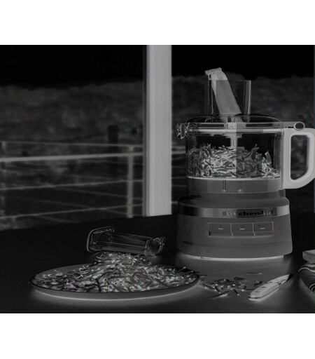 KitchenAid Food Processor, creme Farbe: Creme Material: Schüssel und Motogehäuse Kunststoff Messer und Schneid-/Reibscheiben Edelstahl Maße: B x H x T ca. 39 x 19,5 x 19,5 cm Inhalt: Inkl. Vielzweck- und Teigmesser, beidseitig verwendbare Schneid-/Reibscheibe (4 mm, mittel) und Schneidscheibe (6 mm, dick), Schüssel, Antriebsadapter und Bedienungsanleitung Gewicht: Ohne Zubehör ca. 2,9 kg, mit Zubehör ca. 3,9 kg Füllmenge: Ca. 1,7 l Leistung: 250 W Energieeffizienz-Angaben: Informationen zur Entsorgung sowie zu Sammelstellen in Ihrer Nähe finden Sie unter www.tchibo.de Gebrauchsanweisung: Schüssel, Deckel und Zubehör spülmaschinengeeignet Technische Details: 220-240 V / 50-60 Hz 750-1.500 U/Min (2.800 b. Puls-Modus) Sonstige Hinweise: Hersteller und Garantiegeber: KitchenAid Europa, Inc., Nijverheidslaan 3, box 5, 1853 Strombeek-Bever, Belgium Garantiedauer: 2 Jahre Garantieumfang: auf das Gerät Geltungsbereich: in allen Verkaufsländern Modellnummer: 5KFP0719EAC Hersteller-EAN-Code: 5413184603304 3 Geschwindigkeitsstufen und ImpulsfunktionVielzweckmesser aus Edelstahl – zum Zerkleinern von rohem Obst und Gemüse oder Nüssen, zum Hacken von Kräutern, zum Zubereiten von Dressings und Saucen und vielem mehrFüllmenge ca. 1,7 LiterBeleuchtete LED-BedienelementeVielfältiges Zubehör wie Vielzweck- und Teigmesser, beidseitig verwendbare Schneid-/Reibscheibe und Schneidscheibe2-in-1-Einfüllstutzen im Deckel mit kleinem Zutatenstopfer und kleiner Tropföffnung für ÖlKabelaufwicklung unter der Basis Einfaches Reinigen: Schüssel, Deckel und Zubehör spülmaschinengeeignet ...