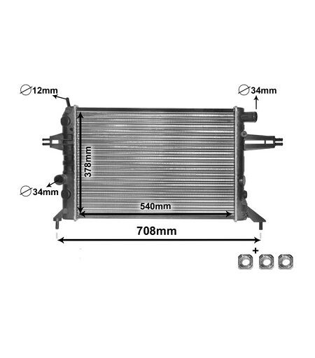 VAN WEZEL Kühler, Motorkühlung Ergänzungsartikel/Ergänzende Info: mit Zubehör Rohrdurchmesser von: 12 mm Einlass-Ø 1: 34 mm Technische Informationsnummer: KZ: GX Auslass-Ø 1: 34 mm Qualität: IR PLUS Netztiefe: 23 mm Kühlrippenmaterial: Aluminium Material Wasserkasten (Kühler): Kunststoff Kühlerausführung: Kühlrippen mechanisch gefügt Netzlänge: 540 mm Netzbreite: 380 mm , u.a. für Opel Astra F (T92), 1389 cm³, 90 PS (66 kW), 9/1996 bis 2/1998, KBA-Nr: 0035311Opel Astra G (T98), 1598 cm³, 75 PS (55 kW), 2/1998 bis 9/2000, KBA-Nr: 0035344Opel Astra G (T98), 1598 cm³, 101 PS (74 kW), 2/1998 bis 1/2005, KBA-Nr: 0035345Opel Astra G (T98), 1796 cm³, 116 PS (85 kW), 2/1998 bis 9/2000, KBA-Nr: 0035347Opel Astra G (T98), 1598 cm³, 75 PS (55 kW), 2/1998 bis 9/2000, KBA-Nr: 0035352Opel Astra G (T98), 1598 cm³, 101 PS (74 kW), 2/1998 bis 7/2004, KBA-Nr: 0035353Opel Astra G (T98), 1796 cm³, 116 PS (85 kW), 2/1998 bis 9/2000, KBA-Nr: 0035355Opel Astra G (T98), 1598 cm³, 101 PS (74 kW), 3/2000 bis 5/2005, KBA-Nr: 0035428Opel Astra G (T98), 1598 cm³, 75 PS (55 kW), 9/1998 bis 9/2000, KBA-Nr: 0035362Opel Astra G (T98), 1598 cm³, 101 PS (74 kW), 9/1998 bis 1/2005, KBA-Nr: 0035363Opel Astra G (T98), 1796 cm³, 116 PS (85 kW), 9/1998 bis 9/2000, KBA-Nr: 0035365Opel Astra G (T98), 1389 cm³, 90 PS (66 kW), 2/1998 bis 1/2005, KBA-Nr: 0035343Opel Astra G (T98), 1389 cm³, 90 PS (66 kW), 6/1998 bis 7/2004, KBA-Nr: 0035351Opel Astra G (T98), 1389 cm³, 90 PS (66 kW), 9/1998 bis 1/2005, KBA-Nr: 0035361Opel Zafira A (T98), 1598 cm³, 101 PS (74 kW), 4/1999 bis 6/2005, KBA-Nr: 0035373Opel Astra G (T98), 1796 cm³, 116 PS (85 kW), 3/2000 bis 10/2000, KBA-Nr: 0035385Opel Astra G (F70), 1598 cm³, 75 PS (55 kW), 1/1999 bis 9/2000, KBA-Nr: 0039131Opel Astra G (T98), 1796 cm³, 125 PS (92 kW), 9/2000 bis 5/2005, KBA-Nr: 0035398Opel Zafira A (T98), 1796 cm³, 125 PS (92 kW), 9/2000 bis 6/2005, KBA-Nr: 0035400Opel Astra G (T98), 1598 cm³, 84 PS (62 kW), 9/2000 bis 1/2005, KBA-Nr: 0035407Opel Astra G (T98), 1796 cm³, 125 PS (92 kW), 9/2000 bis 1/2005, KBA-Nr: 0035408Opel Astra G (T98), 1598 cm³, 84 PS (62 kW), 9/2000 bis 1/2005, KBA-Nr: 0035404Opel Astra G (T98), 1796 cm³, 125 PS (92 kW), 6/2000 bis 1/2005, KBA-Nr: 0035405Opel Astra G (T98), 1598 cm³, 84 PS (62 kW), 9/2000 bis 7/2004, KBA-Nr: 0035410Opel Astra G (T98), 1796 cm³, 125 PS (92 kW), 9/2000 bis 7/2004, KBA-Nr: 0035411Opel Astra G (T98), 1598 cm³, 101 PS (74 kW), 3/2001 bis 10/2005, KBA-Nr: 0035423Opel Astra G (F70), 1598 cm³, 84 PS (62 kW), 9/2000 bis 4/2005Opel Zafira A (T98), 1598 cm³, 97 PS (71 kW), 9/2001 bis 6/2005, KBA-Nr: 0035442Opel Astra G (T98), 1598 cm³, 97 PS (71 kW), 3/2003 bis 7/2004, KBA-Nr: 0035012Opel Astra G (T98), 1598 cm³, 103 PS (76 kW), 11/2002 bis 1/2005, KBA-Nr: 0035470Opel Astra G (T98), 1598 cm³, 103 PS (76 kW), 12/2002 bis 12/2009, KBA-Nr: 0035476Opel Astra G (T98), 1598 cm³, 103 PS (76 kW), 12/2002 bis 5/2004, KBA-Nr: 0035477Opel Astra G (T98), 1598 cm³, 103 PS (76 kW), 1/2003 bis 10/2005, KBA-Nr:... ...
