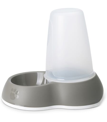 In diesem Spender von Savic ist das Trockenfutter für Ihr Haustier appetitlich aufgehoben und steht immer frisch bereit. Dank des transparenten Behälters haben Sie die Futtermenge dabei stets im Blick und können ihn bei Bedarf nachfüllen. So ersparen Sie sich den täglichen Gang zur Vorratskammer, bis die Box geleert ist. Dabei sorgt der Anti-Rutsch-Gummirand am Boden dafür, dass der Savic Futterspender Loop auch auf glatten Böden einen festen Stand behält. Ein modernes Accessoire, das für mehr Komfort in jedem Hunde- oder Katzenhaushalt sorgt. Savic Futterspender Loop – warmgrau im Überblick: Futterspender für Katzen, Hunde oder Gruppen größerer Kleintiere (z.B. Kaninchen, Ratten, Meerschweinchen etc.) Transparenter Behälter: zur einfachen Kontrolle der Futtermenge Anti-Slip-Gummirand: verhindert das Verrutschen des Spenders, selbst auf glatten Böden Leicht zu reinigen: aus unkompliziert und hygienisch abspülbarem Kunststoff Hohe Qualität: made in Belgium Mit hübschen Pfotenmotiv am Rand Erleichtert eine rationierte Fütterung und erspart den täglichen Gang zur Vorratskammer Farbe: warmgrau, transparent Material: Behälter Napf: Kunststoff (Polypropylen) Antirutsch-Gummirand: PP, SBS Maße: Gesamt: L 26 x B 17,5 x H 23 cm Fassungsvolumen: 1,5 Liter Hinweis: Um eine Überfütterung Ihrer Tiere zu vermeiden, informieren Sie sich bitte über die Fütterungsempfehlungen des jeweiligen Futterherstellers! ...