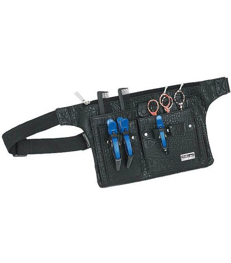 Tasche für 3 Scheren. Mit Fächern für Kämme und sonstige Utensilien. Maße ca.: 23 x 17 cm. Gürtel verstellbar, mit Clipverschluss. Aus hochwertigem Kunstleder. Ohne Inhalt. ...