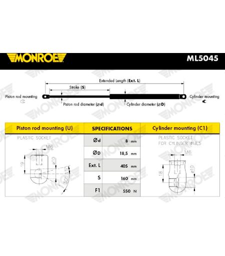 Monroe Gasfeder, Koffer-/laderaum 550n Für Skoda Fso 1u9827550a 1u9827550b 58084 Ml5045