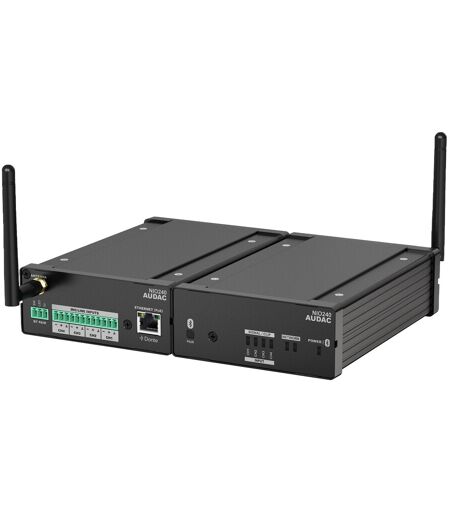 AUDAC NIO-Serie: Zukunftsweisende Audiotechnologie für FestinstallationenAUDAC, ein führender Anbieter innovativer Audiolösungen, setzt mit der NIO-Serie neue Maßstäbe. Die Mixer kombinieren modernste Technologien und maximale Flexibilität für den professionellen Einsatz. Basierend auf jahrzehntelanger Erfahrung und technologischem Fortschritt bietet die NIO-Serie leistungsstarke Features, die den Ansprüchen anspruchsvoller Installationen gerecht werden.Technische Daten auf einen Blick:Eingänge: 4 x symmetrische Mikrofon-/Line-Eingänge (umschaltbar)4 x 4 Kanäle Dante™ & AES67Integrierter Bluetooth-Empfänger (Version 4.2)48V Phantomspannung aktivierbarEQ, automatische Gain-Regelung, Routing und Mixing via AUDAC Touch™Gehäuse: Kompaktes S-box™-DesignInstallation: Kompatibel mit MBS1xx-InstallationszubehörNetzwerk: IP-basierte Kommunikation, PoE-SpannungsversorgungVielseitigkeit & intuitive SteuerungDie NIO-Serie überzeugt durch ihre Netzwerkfähigkeiten und digitale Signalverar... ...