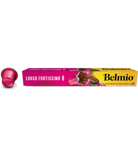 Belmio Lungo Fortissimo 10 Kapseln für Nespresso® () Ein starkes und kräftiges Lungo-Kaffeemischung, perfekt für Nespresso®-Maschinen. Jede Kapsel enthält einen reichen und intensiven Geschmack, der Ihre Sinne wecken wird. Zutaten: Kaffee Nährwertangaben: Energie Fett Kohlenhydrate Eiweiß 10 kJ 0g 0g 1g Allergie-Informationen: Dieses Produkt kann Spuren von Nüssen enthalten. ...