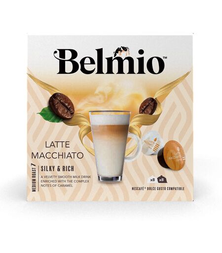 Belmio Dolce Gusto Latte Macchiato 10 Kapseln () Genießen Sie den reichen und cremigen Geschmack von Belmio Dolce Gusto Latte Macchiato mit diesen praktischen 10 Kapseln. Perfekt für ein luxuriöses Kaffeeerlebnis zu Hause. Zutaten: Milchpulver, Zucker, Instantkaffee Nährwertangaben Pro Portion (1 Kapsel) Energie 70 kcal Protein 2g Fett 3g Kohlenhydrate 8g Allergieinformationen: Enthält Milch. Kann Spuren von Nüssen enthalten. ...