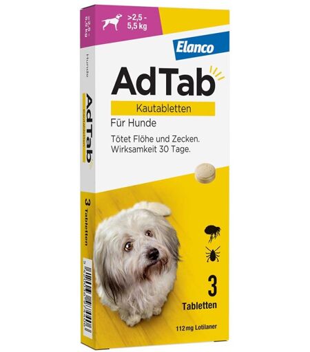 AdTab Hund 2,5 - 5,5 kg Kautablette gegen Zecken und Flöhe
