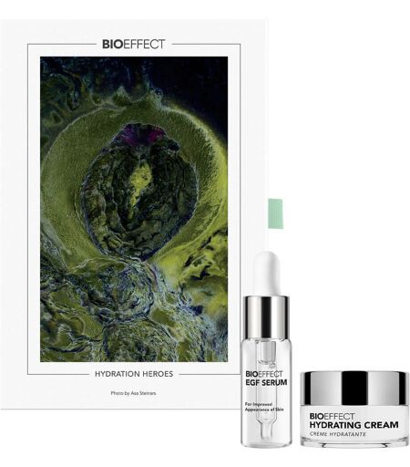 In diesem Jahr bietet BIOEFFECT die Möglichkeit, sich selbst oder einem geliebten Menschen das preisgekrönte EGF Serum zu schenken, das international als Bestseller gefeiert wird. Neben einer 15 ml Größe des EGF Serums enthält das Set zusätzlich eine 15 ml Reisegröße der beliebten Hydrating Cream, um die EGF-Pflegeroutine zu vervollständigen. Das EGF Serum ist eine innovative Formel mit 7 reinen Inhaltsstoffen, die hilft, Zeichen der Hautalterung entgegenzuwirken. BIOEFEFCT EGF unterstützt die hauteigene Kollagenproduktion, um die Haut glatt, straff und gesund zu halten. Abgerundet wird diese Pflegeroutine mit der Hydrating Cream. Eine erfrischende Feuchtigkeitscreme mit isländischem Wasser, Hyaluronsäure und Vitamin E, die die Haut intensiv mit Feuchtigkeit versorgt und ein weiches, geschmeidiges Finish hinterlässt. Zusammen sorgen beide Produkte für eine revitalisierte, gut hydrierte und sichtbar gesündere Haut. Hauptinhaltsstoffe BIOEFFECT EGF (Epidermal Growth Factor): Ein hautidentisches Signalprotein, das die natürliche Kollagenproduktion unterstützt, die Hautdichte verbessert und das Erscheinungsbild von Falten reduziert. Fördert sichtbar die Hauterneuerung für ein glattes, gesundes Hautbild.Hyaluronsäure: Ein natürlicher Bestandteil der Haut, der eine entscheidende Rolle bei der Feuchtigkeitsbindung spielt. Bekannt für ihre Fähigkeit, große Mengen Wasser zu speichern – für prallere, hydratisierte Haut.Glycerin: Ein pflanzlicher Feuchtigkeitsspender, der Wasser in die Haut zieht und die Oberfläche glättet und pflegt.Isländisches Wasser: Rein, weich und besonders sanft – natürlich gefiltert durch vulkanisches Gestein und arm an harten Mineralien wie Kalzium und Magnesium. Ideal für empfindliche Haut. Anwendung: Nach der Reinigung der Haut 2–4 Tropfen des EGF Serums auf Gesicht, Hals und Dekolleté auftragen und mit sanften, kreisenden Aufwärtsbewegungen einmassieren. Anschließend die Hydrating Cream auf die gleichen Partien verteilen und ebenfalls mit kreisenden Bewegungen einmassieren. Vor dem Auftragen von Sonnenschutz oder Make-up sollte die Pflege 3–5 Minuten einwirken. Warnhinweise: Direkten Kontakt mit den Augen vermeiden. Bei Augenkontakt gründlichmit warmem Wasser ausspülen. Außer Reichweite von Kindern aufbewahren. Nur zur äußerlichen Anwendung. Nicht dem direkten Sonnenlicht aussetzen. Bei Raumtemperatur oder darunter lagern. ...
