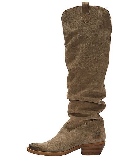 Damen Boots im Cowboy-Style Hochwertiges Velourleder Breiter, hoher Schaft Dekorative Stickereien Zulaufende Spitze Kompakter Blockabsatz Absatzhöhe: ca. 3cm Farbbezeichnung: Grey Material: Velourleder ...