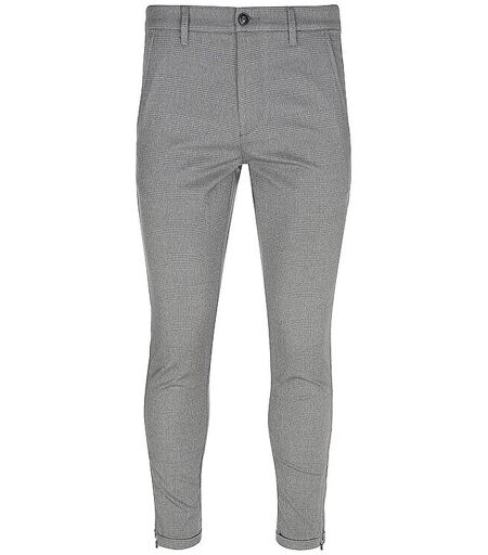Herren Chino aus hochwertigem Viskose-Mix Mittlere Leibhöhe Unifarben Seitliche Eingriffstaschen Schmaler Beinverlauf Karierte Qualität Farbbezeichnung: Grey Material: 64% Polyester 34% Viskose 2% Elasthan ...