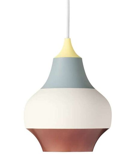 Die Louis Poulsen Cirque Pendelleuchte eignet sich für Restaurants und Hotels mindestens genauso gut wie für private Räume. Die Designerin ließ sich auf einem Jahrmarktbesuch zum Entwurf dieser Pendelleuchte inspirieren - daher auch die bunten Farben und die fröhliche Form. Durch die weiß lackierte Innenseite wird das Licht blendfrei nach unten geleitet, so dass die Louis Poulsen Cirque Pendelleuchte sowohl über dem Esstisch als auch über einem Tresen oder Arbeitstisch perfekt aufgehoben ist. Die Louis Poulsen Cirque Pendelleuchte ist in drei Größen und drei Farbkombinationen erhältlich: Ø 15 cm, Ø 22 cm oder Ø 38 cm, die Farben sind abhängig von der Farbe des obersten Kreises, den es in kupfer, rot, gelb oder grau gibt. Die Cirque Pendelleuchte von Louis Poulsen verfügt über eine E27 Fassung und kann daher problemlos gedimmt werden und durch das 3m lange Textilkabel eignet sie sich für... ...