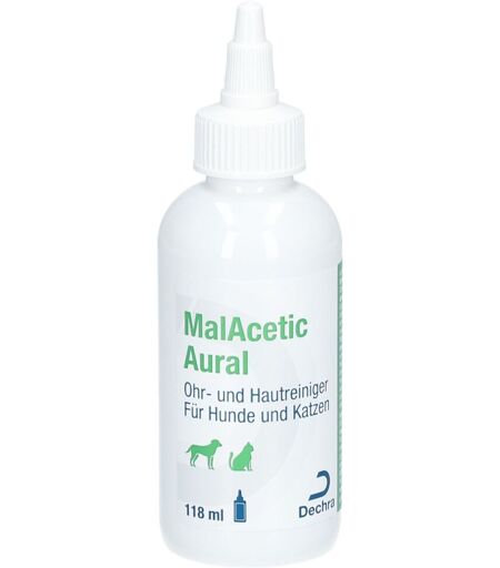 MalAcetic Aural Ohr- und Hautreiniger Milde Ohr- und Hautreinigung für Hund und Katze Hypoallergen, mild und intensiv reinigend.MalAcetic Aural von Albrecht milder Ohr- und Hautreiniger für Hunde und Katzen. MalAcetic Aural verfügt über eine nach dermatologischen Gesichtspunkten konzipierte, hypoallergene Zusammensetzung für eine milde aber sehr intensive Reinigung von Ohren und Haut. Zur Ohrreinigung etwas MalAcetic Aural in den Gehörgang füllen und von außen sanft massieren - dabei oder danach austretende Flüssigkeit mit einem Tuch aufsaugen. Bei stark verschmutzten Ohren 1-2 mal täglich, zur regelmäßigen Pflege 1-2 mal pro Woche anwenden. Zur spezifischen Reinigung der äußeren Haut erfolgt die Anwendung 2-3 mal täglich. Zusammensetzung: 2 % Essigsäure, 2 % Borsäure Hinweis: Bei Verabreichung sollte MalAcetic Aural 20°C bis 30°C warm sein. ...