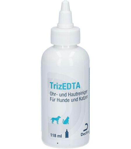 TrizEDTA Ohr- und Hautreiniger Ohr- und Hautreiniger von Albrecht für Hunde und Katzen. Vielseitig einsetzbarer alkalisierender TrizEDTA Ohr- und Hautreiniger zur Reinigung und/oder als Vorbehandlung vor der Anwendung spezifischer Gehörgangspräparate. hochverträglich, alkalisch (pH 7,5 - 8) Tris und EDTA ideal zur reinigenden Pflege Anwendung: Vor der ersten Entnahme weiße Verschlusskappe abdrehen und Siegel entfernen. Vor Gebrauch gut schütteln. Bei Verabreichung sollte TrizEDTA am besten körperwarm sein. In den Gehörgang füllen oder auf betroffene Hautstellen auftragen. Die Ohrbasis sanft für eine gute Verteilung massieren. Anschließend aus der Ohröffnung austretende Flüssigkeit mit einem Tuch aufsaugen. Wiederholung der Anwendung nach Bedarf oder tierärztlicher Anweisung. Inhalttstoffe: Aqua, Tromethamine (TRIS), Disodium EDTA, Trizma Hydrochloride. ...
