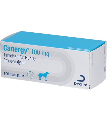 Canergy® 100 mg Tabletten für Hunde Zur Verbesserung der peripheren und zerebralen Gefäßdurchblutung. Zur Verbesserung des Zustands bei Trägheit und Lethargie sowie des Allgemeinzustands bei Hunden. Zieltierart: Hund Dosierung: Die Grunddosierung beträgt täglich 6 - 10 mg Propentofyllin pro kg Körpergewicht und wird verteilt auf zwei Einzelgaben wie folgt verabreicht: Körpergewicht (kg) Morgens Abends Tagesdosis (Anzahl Tabletten) Tagesdosis (mg/kg) 5 kg - 8 kg 1/4 Tablette 1/4 Tablette 1/2 6,25 - 10,0 >8 kg - 10 kg 1/2 Tablette 1/4 Tablette 3/4 7,5 - 9,4 >10 kg - 15 kg 1/2 Tablette 1/2 Tablette 1 6,7 - 10,0 >15 kg - 25 kg 1/2 Tablette 1 Tablette 1 1/2 6,0 - 10,0 >25 kg - 33 kg 1 Tablette 1 Tablette 2 6,1 - 8,0 >33 kg - 49 kg 1 1/2 Tabletten 1 1/2 Tabletten 3 6,1 - 9,1 >49 kg - 66 kg 2 Tabletten 2 Tabletten 4 6,1 - 8,2 >66 kg - 83 kg 2 1/2 Tabletten 2 1/2 Tabletten 5 6,0 - 7,6 Hinweise für die richtige Anwendung: Um die Verabreichung der korrekten Dosis sicherzustellen, ist vor der Behandlung das Körpergewicht des Tieres zu ermitteln. Die Tabletten können dem Hund direkt ins Maul gegeben, hinten auf die Zunge gelegt oder in einem Futterbällchen gegeben werden und sollten mindestens 30 Minuten vor der Fütterung verabreicht werden. Zur Sicherstellung einer korrekten Dosierung können die Tabletten in gleiche Hälften oder Viertel geteilt werden. Legen Sie die Tablette mit der Bruchrille nach oben und der konvexen (abgerundeten) Seite nach unten auf eine gerade Oberfläche. Wirkstoff(e) und sonstige Bestandteile: Jede Tablette enthält: Wirkstoff: Propentofyllin 100 mg Sonstige Bestandteile: Lactose-Monohydrat, Maisstärke, Crospovidon, Talkum, Hochdisperses Siliciumdioxid, Calciumbehenat, Hefe-Aroma, Künstliches Fleisch-Aroma ...