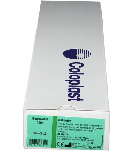 EasiCath® EinmalkatheterEasiCath® ist ein traditioneller, hydrophil beschichteter Einmalkatheter. Sie müssen ihn nur mit sterilem Wasser aktivieren und 30 Sekunden warten. Dann ist der Katheter gebrauchsfertig. Die hydrophile Beschichtung ermöglicht die Katheterisierung mit weniger Reibungswiderstand als ein unbeschichteter Katheter mit Gel.Die Katheteraugen sind sanft, abgerundet und beschichtet. Dies macht den Katheter sanft zur Harnröhrenschleimhaut. Dadurch wird die Katheterisierung angenehmer und sicherer.Die Vorteile des EasiCath® Katheters: Hydrophil beschichtet Beschichtete Katheteraugen für Komfort und Sicherheit Steril Einmalgebrauch Geringer Reibungswiderstand – sanfte und sichere Anwendung Gebrauchsfertig in 30 Sekunden Produktdetails: Geschlecht: Männer Größe: CH 14 Beschichtung: hydrophil beschichtet Länge: 40cm Katheterspitze: Tiemann ...