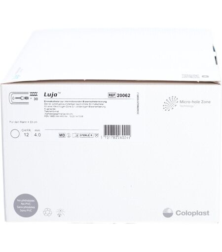 Coloplast Luja™ Einmalkathether Mann im Taschenformat Ch 12 Luja™ - der innovative Einmalkatheter für Männer mit Micro-hole Zone Technology™. Bei Luja handelt es sich um den ersten Katheter mit über 80 Mikro-Augen zur vollständigen Blasenentleerung, ohne unterbrochenen Harnfluss. Luja wurde entwickelt, um das Risiko von Harnwegsinfekten zu verringern: Mehr Augen – für einen kontinuierlichen Fluss. Mehr Kontrolle – durch einfache und schnelle Anwendung ohne Repositionieren. Mehr für mich – für ein geringeres Risiko von Harnwegsinfekten bei Ihren Patienten. ...