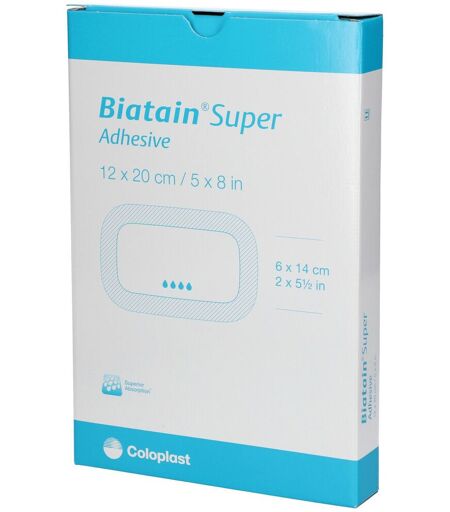 Exzellente Absorption für stark exsudierende Wunden.Biatain® Super ist ein stark absorbierender Hydrokapillarverband, der in selbsthaftender und nicht-haftender Variante erhältlich ist.VerwendungBiatain Super kann bei einem breiten Spektrum exsudierender Wunden eingesetzt werden, insbesondere bei Ulcus cruris, Dekubitus, diabetischem Fußsyndrom, Verbrennungen zweiten Grades, postoperativen Wunden und Hautabschürfungen. Biatain Super kann auch unter Kompressionstherapie eingesetzt werden.Biatain Super ist ein stark absorbierender Hydrokapillarverband, der ein optimales feuchtes Wundmilieu für exsudierende Wunden bietet.Geeignet für stark exsudierende Wunden Schnelle Absorption Verteilung und Speicherung von Wundexsudat ermöglichen die volle Nutzung der Absorptionskapazität bei minimalem Risiko von Mazeration und Leckagen, selbst bei stark exsudierenden Wunden. Optimales feuchtes Wundmilieu für schnellere Heilung Einfach anwendbarer WundverbandDas hydrokapillare Wundkissen absorbiert Wundexsudat vertikal und verteilt es horizontal. Die Verbände gewährleisten ein optimales feuchtes Wundmilieu für schnellere Heilung.Verglichen mit anderen stark absorbierenden Verbänden ist Biatain Super eine kostengünstige Lösung, die keine weiteren Wundkontaktschichten benötigt. WirkungsweiseSuperabsorber-Partikel absorbieren und speichern große Mengen Wundexsudat. Fasern verteilen das Exsudat im gesamten Wundkissen und maximieren so die Absorption. Die hohe Durchlässigkeit für Wasserdampf trägt zum exzellenten Exsudatmanagement bei. ZusammensetzungBiatain Super besteht aus einem stark absorbierenden hydrokapillaren Wundkissen mit einer semipermeablen, wasser- und bakterienabweisenden Außenfolie, einer Hydrokolloidkomponente für die Haftung und einer nicht-haftenden Wundauflage. ...