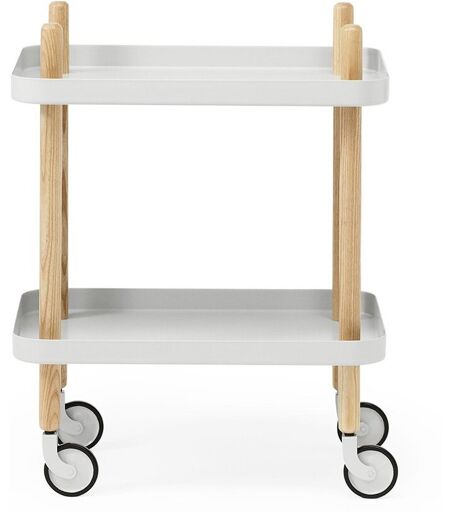 Bitte beachten Sie: Sie erhalten hier eine Retoure mit einem kleinen Lackfehler in einer Metallplatte - bitte siehe Bild - zu einem besonders attraktiven Preis! In Anlehnung an das klassische Tablett entwarf Designer Simon Legald den Normann Copenhagen Block Beistelltisch, unverkennbar hier die hochstellte Kante der beiden Ablageflächen. Die Flächen des Normann Copenhagen Block Beistelltisch bestehen aus Stahl und sind durch Streben aus massivem Eschenholz verbunden. Die Verlängerungen dienen gleichzeitig als handliche Griffe und machen den mithilfe der drehfreudigen Rollen zu einem mobilen und vielseitigen Möbelstück. In seiner schlichten Optik passt der Normann Copenhagen Block Beistelltisch zu den verschiedensten Einrichtungsstilen und kann als Couchtisch, Servierwagen, mobile Minibar, Teewagen, Nachttisch oder generell als praktische Ablagefläche im Büro, Bad, Kinderzimmer und ... ...
