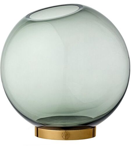 Die elegante AYTM Globe Vase zeichnet sich durch ihre markante Form aus. Die edle sphärische Vase der dänischen Marke AYTM besteht aus einem handgefertigtem Glaskorpus, der auf einem Sockel aus solidem Messing oder Aluminium platziert wird. Die Glaskugel wird frei auf dem Fuß platziert, so dass die Ausrichtung der Vasenöffnung beliebig gewählt werden. Das klare, puristische Design, die anmutige Form und die harmonischen Farben verleihen der Globe Vase ihr unverwechselbares Erscheinungsbild, das in jedem Zimmer ein luxuriösen, skandinavischen Touch versprüht. Für eine dekorative Präsentation von Blumen, Blättern, Zweigen, Duftstäbchen oder sogar Leckereien bietet die Aytm Globe Vase die perfekte Inszenierung. Klassisch und zeitlos elegant wertet die runde Glasvase jeden Raum optisch auf. Einzeln für sich auf dem Sideboard, Esstisch oder Beistelltisch stehend, aber auch als harmonische Gru... ...