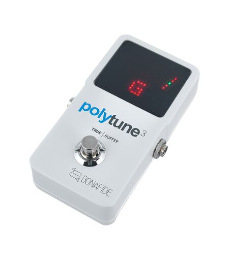 tc electronic Polytune 3, Effektpedal, Polyphonic Tuner/Buffer, Bonafide-Bufferschaltung erhält Ihren Ton durch lange Kabelwege und mehreren Effekten, polyphones Tuning - Stimme alle Saiten gleichzeitig, schneller chromatischer Tuner bietet 0,5 Cent Genauigkeit, ultra-präziser Strobe-Tuner bietet ± 0.02 Cent Genauigkeit, "always on" Modus bietet Tuner erkennung auch wenn der Polytune 3 nicht gemutet ist, automatische Helligkeit anpassende, Super-Helle 109-LED-Anzeige, wechselt automatisch zwischen polyphone und monophone Abstimmung, 0, Fußschalter: On/Off/Mute, True Bypass, Stromverbrauch: 45 mA, Stromversorgung mit einer 9V Batterie oder einem 9V DC Netzteil, (Koaxial Anschluss - Minuspol innen, nicht im Lieferumfang enthalten), passendes optionales Netzteil: Art. Nr. #409939, Abmessungen: (B x T x H): 72 x 122 x 50 mm, Gewicht: 300 g ...
