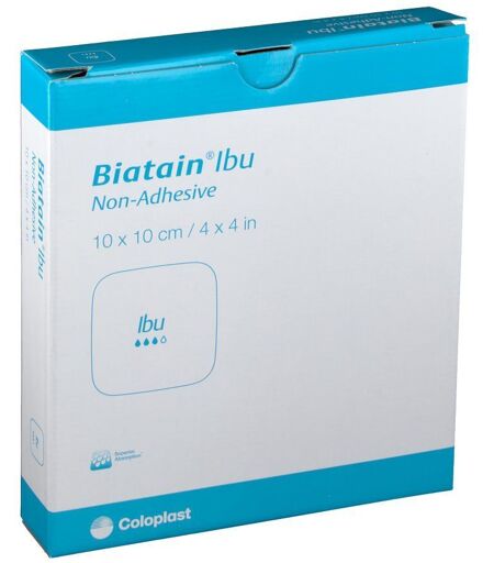 Exzellente Absorption bei schmerzenden Wunden.Biatain® Ibu nicht-haftend ist ein weicher, flexibler, sehr absorbtionsfähiger Schaumverband mit Ibuprofen. Verwendung Biatain Ibu nicht-haftend kann bei einem breiten Spektrum exsudierender Wunden eingesetzt werden, insbesondere bei Ulcus cruris, Dekubitus, Verbrennungen zweiten Grades, postoperativen Wunden, Hautabschürfungen, Spalthautentnahmestellen und nicht infiziertemdiabetischem Fußsyndrom. Biatain Ibu eignet sich zum Einsatz in Kombination mit Kompressionstherapie. Biatain Ibu ist ein weicher, flexibler, absorbierender Schaumverband. Biatain Ibu ist der erste und einzige Verband, der ein feuchtes Wundmillieu schafft und mit lokaler Freisetzung von Ibuprofen kombiniert. Einzigartige 3D-Polymerschaumstruktur für exzellente Absorption. Wenn die einzigartige 3D-Polymerschaumstruktur von Biatain mit Wundexsudat in Kontakt kommt, passt sie sich optimal den Konturen der Wunde an – sogar unter Kompression. Weicher und flexibler Verband Biatain Ibu ist ein weicher und flexibler Verband mit hohem Tragekomfort. Die abgeflachten Ränder reduzieren das Risiko von Druckstellen. Kombiniert die feuchte Wundheilung mit lokaler Freisetzung von Ibuprofen Bei Anwesenheit von Wundexsudat wird über die gesamte Tragezeit des Verbands (bis zu 7 Tage) kontinuierlich eine geringe Ibuprofendosis in die Wunde abgegeben. Wundheilung muss nicht schmerzhaft sein Vergleichsstudien zeigten eine Verringerung der Wundschmerzen bei Patienten, die mit Biatain Ibu versorgt wurden, im Vergleich zu Verbänden ohne Ibuprofen. Wirkungsweise Ibuprofen wird freigesetzt, wenn der Schaumstoff in Kontakt mit Wundexsudat kommt. Zusammensetzung Biatain Ibu ist ein absorbierender Polyurethanschaum, der in der gesamten Schaummatrix homogen verteilt 0,5 mg/cm2 Ibuprofen enthält. ...