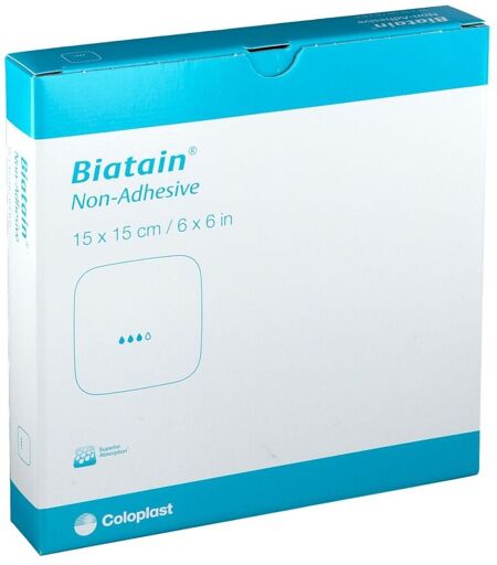 VerwendungBiatain® nicht-haftend kann bei einem breiten Spektrum exsudierender Wunden eingesetzt werden, insbesondere bei Ulcus cruris, Dekubitus, nicht infiziertem diabetischem Fußsyndrom, Verbrennungen 2. Grades, Spalthautentnahmestellen, postoperativen Wunden und Hautabschürfungen.Biatain nicht-haftend kann auch unter Kompressionstherapie eingesetzt werden. Einzigartige 3D-Polymerschaumstruktur für exzellente Absorption.Wenn die einzigartige 3D-Polymerschaumstruktur von Biatain mit Wundexsudat in Kontakt kommt, passt sie sich optimal den Konturen der Wunde an – sogar unter Kompression.Minimale Mazeration und LeckagenMit seinen hervorragenden Eigenschaften hinsichtlich Absorption und Exsudatspeicherung minimiert Biatain nicht-haftend das Risiko von Mazeration und Leckagen. Dieser nicht-haftende Verband eignet sich gut für Wunden mit vorgeschädigter Umgebungshaut.Lange TragezeitAufgrund der exzellenten Absorptionsfähigkeit und sicheren Haftung von Biatain zeichnet sich der Verband durch eine lange Tragezeit aus.Klinische Studien haben gezeigt, dass Biatain eine kostengünstige Lösung mit einer Tragezeit von bis zu 7 Tagen ist.Weicher und flexibler VerbandBiatain nicht-haftend ist ein weicher und flexibler Verband mit hohem Tragekomfort.Die abgeflachten Ränder reduzieren das Risiko von Druckstellen.WirkungsweiseDas Wundexsudat wird von der einzigartigen 3D-Polymerschaumstruktur schnell aufgenommen, vertikal von der Wunde weggeleitet und sicher gespeichert, wobei dennoch ein feuchtes Wundmilieu erhalten bleibt, sodass optimale Bedingungen für die feuchte Wundheilung gegeben sind.ZusammensetzungBiatain nicht-haftend ist ein weicher und anpassungsfähiger Polyurethan-Schaumverband mit einer semipermeablen, wasser- und bakterienabweisenden Außenfolie. ...
