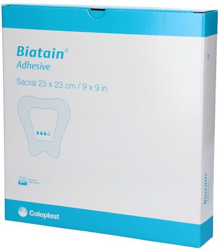 VerwendungBiatain® selbsthaftend kann bei einem breiten Spektrum exsudierender Wunden eingesetzt werden, insbesondere bei Ulcus cruris, Dekubitus, Verbrennungen 2. Grades, Spalthautentnahmestellen, postoperativen Wunden und Hautabschürfungen.Biatain® selbsthaftend kann auch unter Kompressionstherapie eingesetzt werden.Biatain® selbsthaftend ist ein weicher und anpassungsfähiger Polyurethan-Schaumverband, der Wundexsudat effektiv absorbiert und sicher speichert.Damit bleibt ein feuchtes Wundmilieu erhalten, das für die Heilung von exsudierenden Wunden optimal ist.Einzigartige 3D-Polymerschaumstruktur für exzellente Absorption.Wenn die einzigartige 3D-Polymerschaumstruktur von Biatain mit Wundexsudat in Kontakt kommt, passt sie sich optimal den Konturen der Wunde an – sogar unter Kompression.Minimale Mazeration und LeckagenDie exzellente Absorption und Speicherung von Wundexsudat minimiert das Risiko von Mazeration und Leckagen.Dieser selbsthaftende Verband eignet sich gut für Wunden, bei denen die Umgebungshaut gesund ist, sowie in Bereichen, in denen eine stärkere Haftung erforderlich ist.Lange TragezeitAufgrund der exzellenten Absorptionsfähigkeit und sicheren Haftung von Biatain® zeichnet sich der Verband durch eine lange Tragezeit aus.In klinischen Studien ergab sich eine Tragezeit von bis zu 7 Tagen.Weicher und flexibler VerbandBiatain® selbsthaftend ist ein weicher und flexibler Verband mit hohem Tragekomfort.WirkungsweiseDas Wundexsudat wird von der einzigartigen 3D-Polymerschaumstruktur vertikal von der Wunde weggeleitet und sicher gespeichert, wobei dennoch ein feuchtes Wundmilieu erhalten bleibt, sodass optimale Bedingungen für die feuchte Wundheilung gegeben sind.ZusammensetzungBiatain® selbsthaftend ist ein weicher und anpassungsfähiger Polyurethan-Schaumverband mit einem hautfreundlichen Haftrand auf Hydrokolloidbasis. ...
