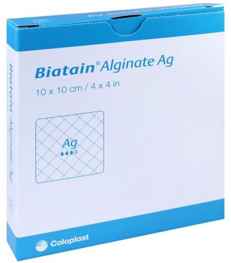 Biatain Alginate Ag Kompressen 10x10 cm mit Silber