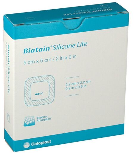 Exzellente Absorption mit sanfter Haftung für bessere Mobilität.Biatain Silicone Lite ist ein dünner und besonders flexibler Schaumverband mit sanfter Silikonhaftung.Er kann bei einem breiten Spektrum exsudierender Wunden eingesetzt werden und bietet sich an, wenn ein dünner Schaumverband benötigt wird.Biatain Silicone Lite kombiniert exzellente Absorption und erhöhte Mobilität.VerwendungBiatain® Silicone Lite kann bei einem breiten Spektrum exsudierender Wunden eingesetzt werden, insbesondere bei Ulcus cruris, Dekubitus, nicht infiziertem diabetischem Fußsyndrom, Spalthautentnahmestellen, postoperativen Wunden und Hautabschürfungen.Biatain® Silicone Lite eignet sich für nicht bis schwach exsudierende Wunden und kann auch unter Kompressionstherapie eingesetzt werden.Einzigartige 3D-Polymerschaumstruktur für exzellente Absorption.Wenn die einzigartige 3D-Polymerschaumstruktur von Biatain Silicone Lite mit Wundexsudat in Kontakt kommt, passt sie sich optimal den Konturen der Wunde an und sorgt so für exzellente Absorption.Die Absorptionsfähigkeit von Biatain Silicone Lite gewährleistet ein optimales Exsudatmanagement, sodass das Risiko von Mazeration und Leckagen minimiert wird.Sicherer HaltDie Wundauflage aus Silikon bietet einen sicheren, rutschfesten Halt bei gleichzeitig minimalen Schmerzen beim Verbandwechsel.Öffnen mit Non-Touch-TechnologieBiatain Silicone Lite wird mit einer 3-teiligen Folie mit Non-Touch-Technologie geöffnet, was eine aseptische, sichere und einfache Applikation ermöglicht und ein Verkleben mit Handschuhen verhindert. Weich, besonders flexibel und bequemDas weiche und besonders flexible Design von Biatain Silicone Lite gewährleistet eine exzellente Passform an Wunde und Körper.Das dünne Schaumkissen auf Hautniveau sorgt für hohen Tragekomfort.Biatain Silicone Lite eignet sich daher besonders für Wunden und Patienten, die mehr Mobilität benötigen.Bakterien- und duschdichtDie permeable Außenfolie ist bakterien- und duschdicht (Link zum Film, Abschnitt zur Bakterien- und Duschdichtigkeit)WirkungsweiseDas Wundexsudat wird von der einzigartigen 3D-Polymerschaumstruktur schnell aufgenommen, vertikal von der Wunde weggeleitet und sicher gespeichert, wobei dennoch ein feuchtes Wundmilieu erhalten bleibt, sodass optimale Bedingungen für die feuchte Wundheilung gegeben sind.Zusammensetzung des ProduktesBiatain® Silicone Lite ist ein dünner, besonders flexibler und absorptionsfähiger Polyurethan-Schaumverband mit einer semipermeablen, wasser- und bakterienabweisenden Außenfolie und einem weichen Silikonhaftrand. ...