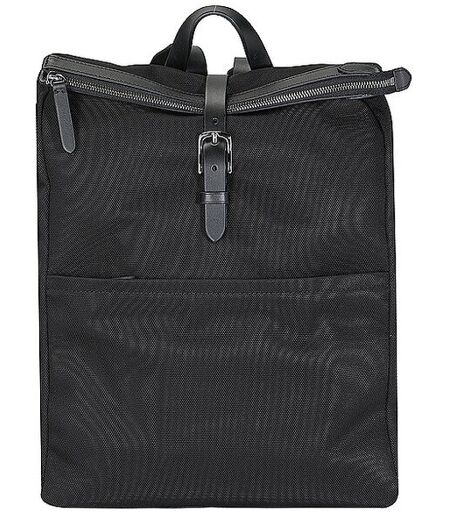 Herren Rucksack aus wasserdichtem Nylon Besatz aus vollnarbigem Zaumleder Geräumiges Hauptfach mit Reißverschluss und Schnallenverschluss Vordertasche mit Reißverschluss 1x Steckfach innen 1x Gepolstertes Laptopfach innen Hardware aus Messing Verstellbare Schulterriemen Unifarben Farbbezeichnung: Schwarz Maße: B: 31 x H: 43 x T: 11 cm Material: 64% Polyamid, 19% Polyester, 17% Polyurethan ...