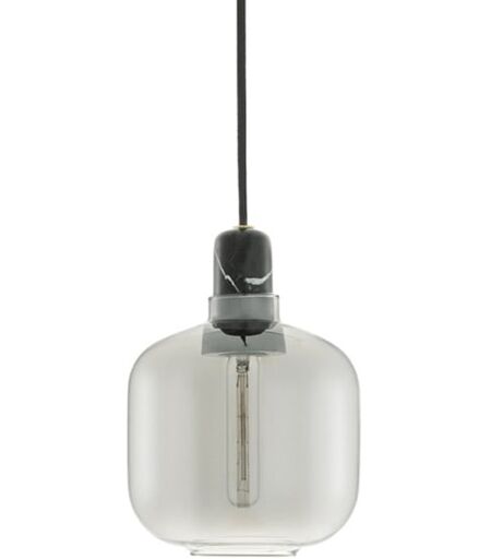 Die Normann Copenhagen Amp Pendelleuchte Small vereint klassisches Design mit exklusiven Materialien. Entworfen im Jahre 2014, schafft es der Designer Simon Legald nostaligisches Design mit klassischen Materialien wie Glas und Marmor zu vereinen. Heraus kommt eine ansprechende Pendelleuchte die jedes Interior gekonnt unterstreicht.Die Normann Copenhagen Amp Pendelleuchte Small ist in verschiedenen Farben erhältlich. Das Glas ist wahlweise weiß matt oder transparent - mit durchscheinendem Leuchtmittel - gehalten. Das farbige Glas bildet einen interessanten Kontrast zu der kompakten Fassung aus Marmor. Die Normann Copenhagen Amp Pendelleuchte Small wird standardmäßig ohne Leuchtmittel geliefert. Dank klassischer E14 Fassung kann jedes passende Leuchtmittel bis 25W verwendet werden. Normann Copenhagen bietet aber auch ein optisch besonders passendes 25W Leuchtmittel an.Egal ob im ... ...