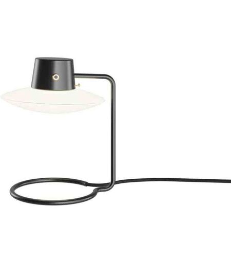Die Louis Poulsen AJ Oxford Tischleuchte mit einem Schirm aus dreischichtigem mundgeblasenem Opalglas und dem schlanken schwarzen Ständer, der nahtlos in den runden Fuß übergeht, stellt ein zeitloses Designstück dar. Die AJ Oxford Tischleuchte wurde von Arne Jacobsen ursprünglich als fest installierte Leuchte für das St Catherine’s College an der englischen Universität Oxford entworfen. Sie spiegelt das modernistische Design des Gebäudes wider, das im Kontrast zur umgebenden klassischen Architektur der Oxford University steht. Mit ihrem grafischen Stil und ihrer monochromen Farbpalette fügt sich die zeitlose AJ Oxford Tischleuchte mühelos in jeden Privat- oder Gewerbebereich ein. Die Tischleuchte ist in verschiedenen Ausführungen mit oder ohne Metalloberschirm und in zwei verschiedenen Höhen erhältlich. Der opalgläserne Diffusor sorgt für eine angenehme und blendfreie Lichtverteilung – n... ...