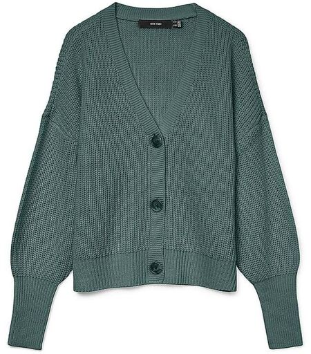 Modische Damen Strickjacke V-Ausschnitt Langarm Überschnitte Schultern Schließt mit Knopfleiste Breite Bündchen am Ärmel Abschluss Lockere Passform Unifarben Farbbezeichnung: Balsam Green Material: 100% Polyacryl ...