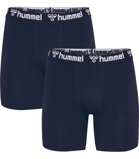 Hummel Boxershorts 2er Pack marine Der hmlBOXERS 2-PACK enthält zwei stylishe und bequeme Boxershorts. Sie bestehen aus weichem Jerseystoff und verfügen über ein elastisches Logoband an der Taille, das jederzeit für eine flexible Passform sorgt. Jerseystoff Elastisches Logoband am Bund 2er-Pack 95% Baumwolle, 5% Elasthan ...