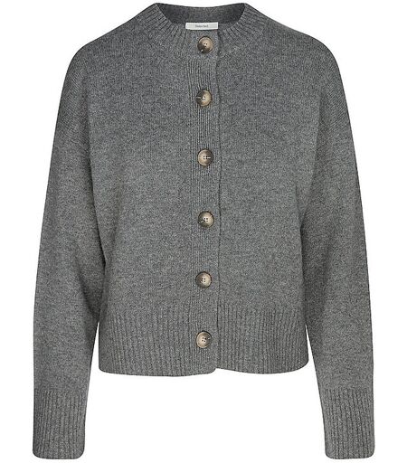 Damen Strickjacke aus hochwertigem Woll-Mix Stehkragen Langarm Schließt mit Knopfleiste Gerippte Bündchen an Ärmel und Saum Unifarben Gerade Passform Farbbezeichnung: Medium Grey Melange Material: 70 % Wolle, 30 % Kaschmir ...