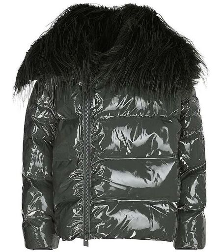 Damen Steppjacke Breiter Kragen mit Kunstfellbesatz Charakteristischer wasserdichter PU-Stoff Sichere rahmengenähte Nähte Aufgesetzte Taschen vorne Isolierter großer Kragen mit ausdrucksstarkem Fleecestoff Karabinerhakenverschluss am Halsband Verdeckte gerippte Sturmbündchen Versteckte elastische Kordel am Saum Gummierte, wetterfeste Hardware Zwei-Wege-Reißverschluss in der vorderen Mitte Oversized Cropped-Passform Innentasche Farbbezeichnung: Coal Material: 100% Polyester ...