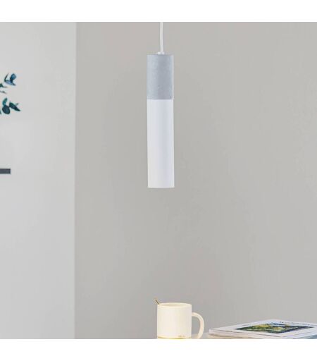 Die einflammige Pendelleuchte Tube ist als Zylinder gestaltet, dessen oberer Bereich aus grauem Beton und unterer Bereich aus weiß lackiertem Stahl gefertigt ist. An der Unterseite wird eine GU10-Lampe eingesetzt (1 x max. 40 W, exklusive), sodass Tube direkte Beleuchtung für den unterhalb gelegenen Bereich spendet. ...