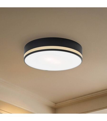 Die runde Deckenleuchte Amore besitzt ein schwarzes Gehäuse aus Metall. Dieses ist mit einem Goldstreifen versehen, was der Leuchte einen eleganten und luxuriösen Touch verleiht. Das zeitlose Design erlaubt es, die Leuchte nicht nur mit einem modernen Wohnstil zu kombinieren, sondern sie auch mit Einrichtungen zu verbinden, die eher klassisch gehalten sind. ...