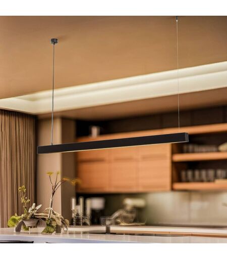 Die Hängeleuchte Lungo ist nicht nur eine stilvolle Beleuchtungslösung für Büros. Die Leuchtenserie Lungo ist ein Vorschlag für alle, die Minimalismus und Eleganz mit schwarzen Akzenten in ihrem Zuhause schätzen. Home Office, Esszimmer oder Küche - diese Räume sind der ideale Ort für die moderne, längliche Hängelampe. Ihre Höhe kann bei Montage frei nach den Bedürfnissen eingestellt werden. Der schwarze Schirm und die minimalistische Form fügen sich perfekt in das Design moderner, industrieller Innenräume ein. Die Pendelleuchte Lungo beleuchtet dabei perfekt die Arbeitsfläche oder den Esstisch. ...