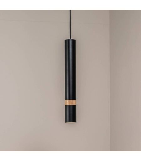 Die Hängeleuchte Joker verfügt über einen schlanken, zylindrischen Schirm aus Metall, der ganz in Schwarz gehalten ist. Am unteren Bereich ist als bewusstes Detail ein Holzring eingearbeitet. Die GU10-Fassung am unteren Ende des Schirms ermöglicht eine direkte Beleuchtung des unterhalb gelegenen Bereichs. ...