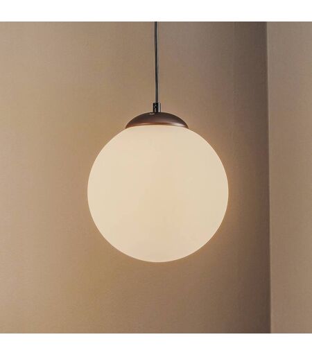 Die Pendelleuchte Lima ist mit einem Kugelschirm aus Opalglas ausgestattet. Dieser ist mit einer Metallkappe besetzt, welche ebenso wie das Kabel und der runde Baldachin in Schwarz gehalten ist. ...