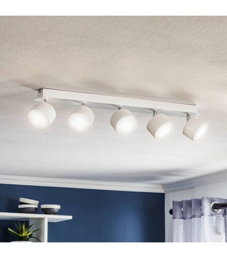 Der fünfflammige Deckenstrahler Cloudy wird aus robustem Metall gefertigt und setzt bewusst auf modern schlichte Gestaltung ganz in Weiß. Die Leuchtmittel für die GX53-Fassungen sind nicht im Lieferumfang enthalten und können den eigenen Wünschen entsprechend ausgewählt werden. ...