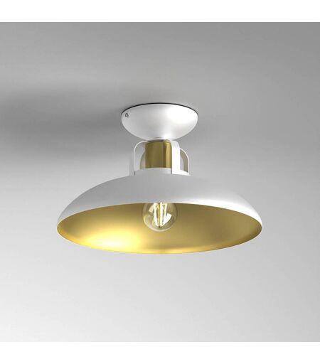 Der weiße Schirm der im industriellen Look kreierten Deckenleuchte Felix ist auf der Innenseite zugunsten einer optimalen Lichtreflexion goldfarben lackiert. Das verleiht dem abstrahlenden Licht einen warmen, gemütlichen Touch. - mit goldfarbenem Detail an der Deckenhalterung ...