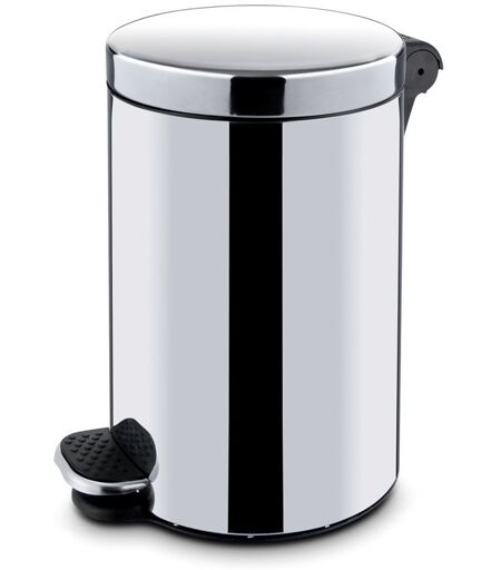 Innenraum-Treteimer aus rostfreiem Stahl hygienisches Öffnen durch Fußpedal mit abnehmbaren Innenplastikbehälter doppelter klappbarer Handgriff des Innenbehälters zur Befestigung von Plastikbeuteln spezieller „Click-Lock“-Mechanismus, der den Deckel in senkrechter Position bei vollem Öffnen verriegelt Eigenschaften: Deckelfarbe: silber, Korbfarbe: silber, Material: Edelstahl glänzend, Höhe (mm): 400, Volumen (l): 12, Durchmesser (mm): 250, Innenbehälter: Ja ...