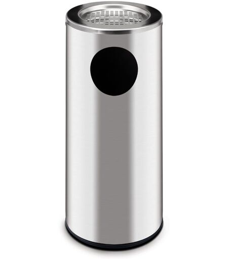 für den Außen- sowie auch Innenbereich geeigneter Abfalleimer mit abnehmbarem Aschenbecher aus lackiertem Blech, Materialstärke 0,4 mm abnehmbarer Aschenbecher im oberen Teil rutschfester Boden aus Gummi Eigenschaften: Material: Edelstahl matt, Höhe (mm): 690, Ausführung: Boden, Packung (Stk.): 1, Korbfarbe: silber, Volumen (l): 34, Durchmesser (mm): 300, Innenbehälter: Nein, Maße (B x T x H) mm: 300 x 300 x 690 ...